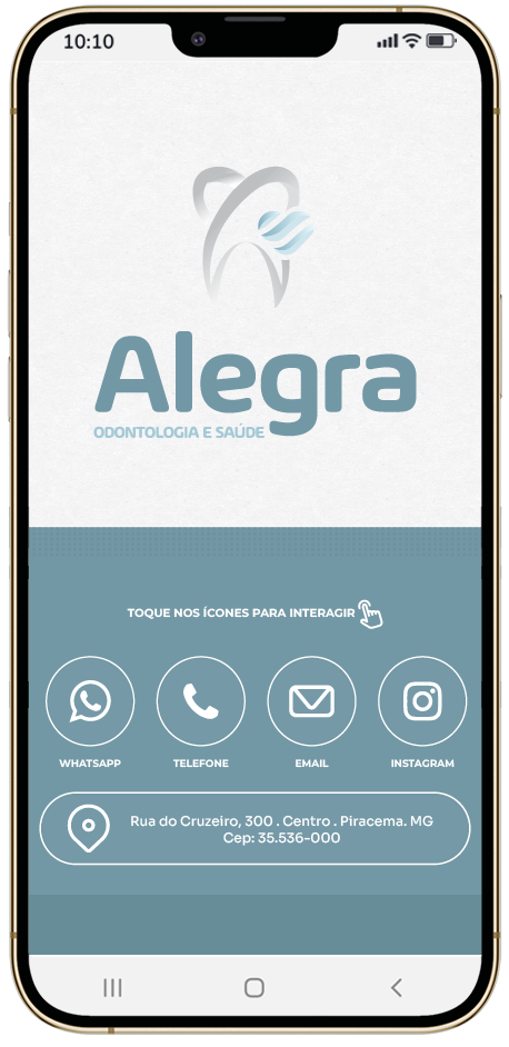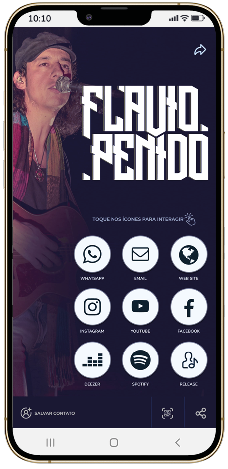 Acesso aos seus contatos e redes sociais através de botões de atalhos.