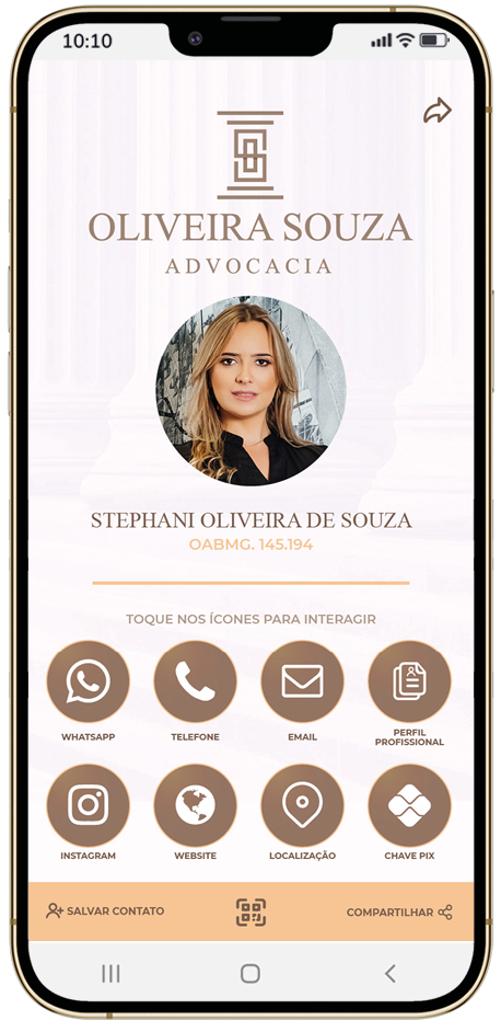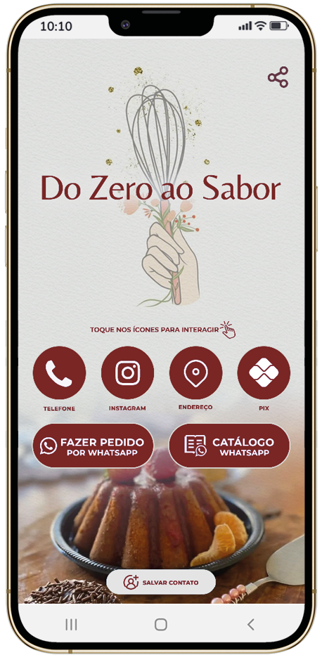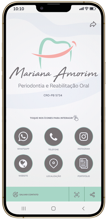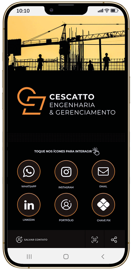 Quem recebe o seu cartão pode salvar os seus contatos direto na agenda, sem precisar digitar nada.