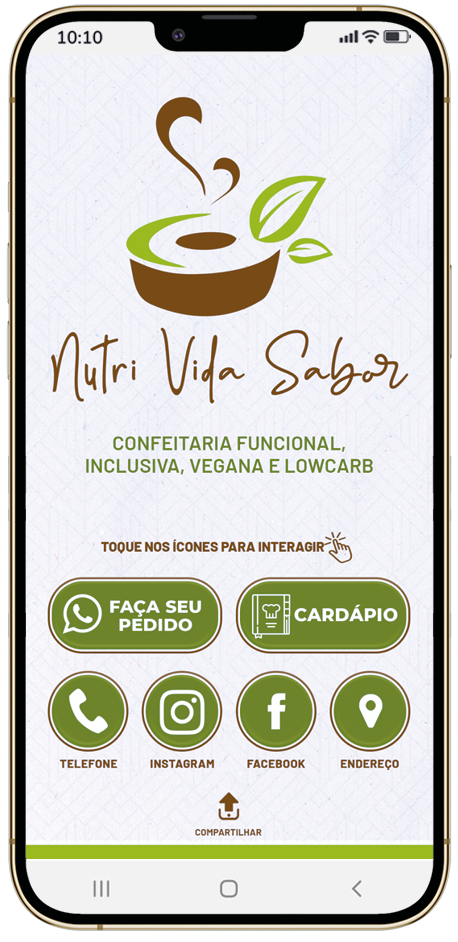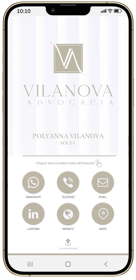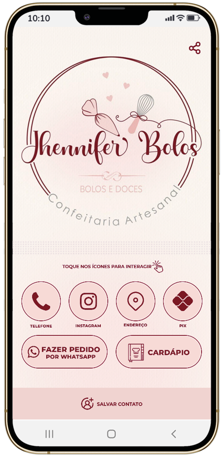 Todos os nossos cartões na versão WEB LINK possuem o botão compartilhar, ao tocar nesse botão abre uma página onde possuem funções para te facilitar na hora de compartilhar seu Cartão Digital.