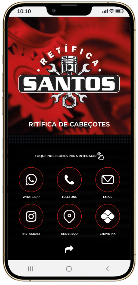 O Cartão de Visita Digital, é um cartão 100% interativo, personalizado com a sua logomarca e cores da sua empresa. Ele possui botões clicáveis, e apenas um toque nesses botões seu cliente terá acesso a todas as suas redes de contato como: Redes sociais, Ligação direta, Envio de mensagem pelo WhatsApp, A sua localização com rota traçada, Site da sua empresa, Envio de E-mail, ou outro link que deseje adicionar.